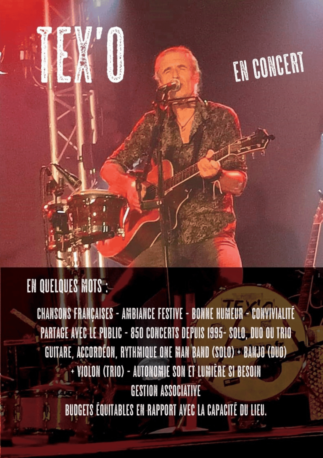 L'artiste jonglera avec le verbe, l'humour et ses instruments fétiches (guitare, harmonica, accordéon et rythmique) façon One Man Band.
