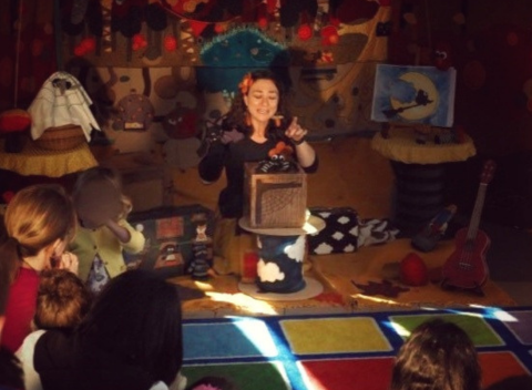 Il y a des animaux de la forêt avec des histoires chantées et dessinées, une valise à histoire avec marionnettes et accessoires et autres chansons originales.