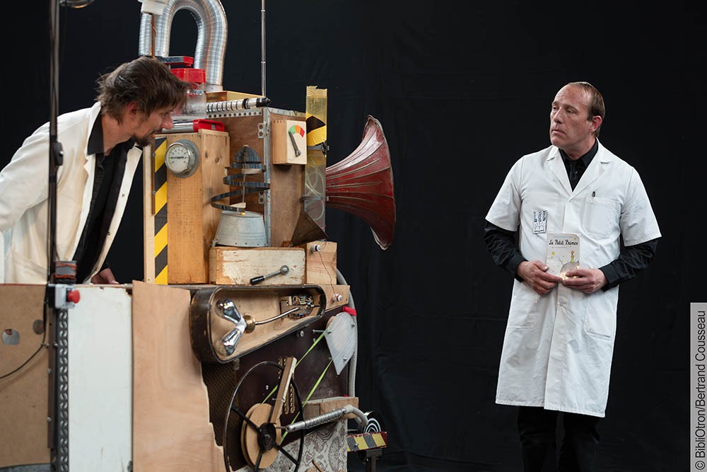 Deux scientifiques, Hervé Dubois et Michel Dupuis – ou sûrement des amateurs – tentent de démontrer que le BibliOtron fonctionne. Il s’agit d’une étrange machine qui tente de donner vie à des personnages racontés dans les livres. À l’image des bouquins et autres prospectus qui traversent le BibliOtron, les marionnettes qui en ressortent sont entièrement constituées de morceaux de livres découpés, morcelés et reconstitués. Alors que l’expérience commence, des créatures émergent de la machine et deviennent problématiques.