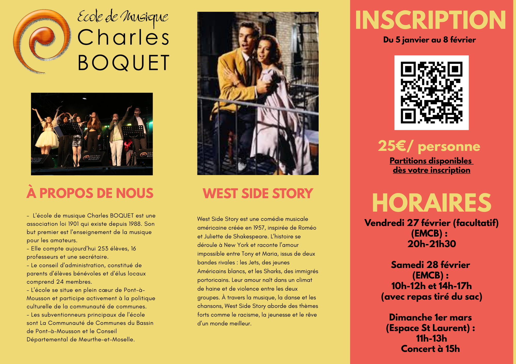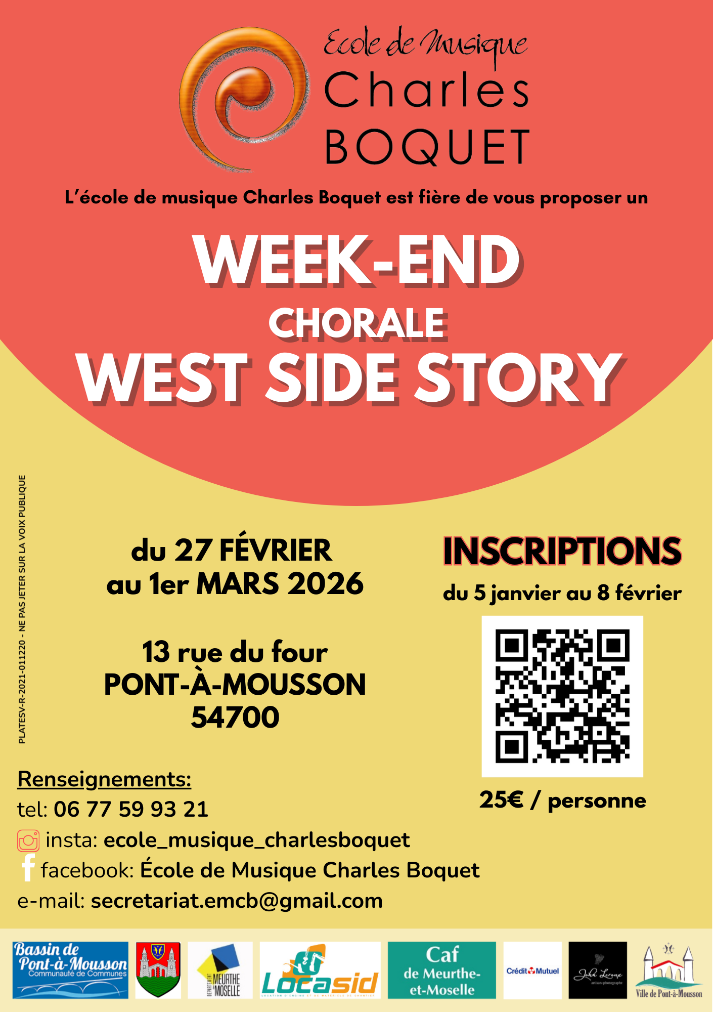 L'école de Musique Charles Boquet est fière de vous présenter un week-end chorale West Side Story, du 27 février au 1er mars !