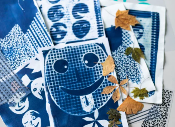 Si le temps s'y prête, l'atelier permettra d'explorer la technique du cyanotype (procédé de développement photographique). Si le temps est à la pluie, l'atelier de cyanotypes sera remplacé par des monotypes (technique d'impression).