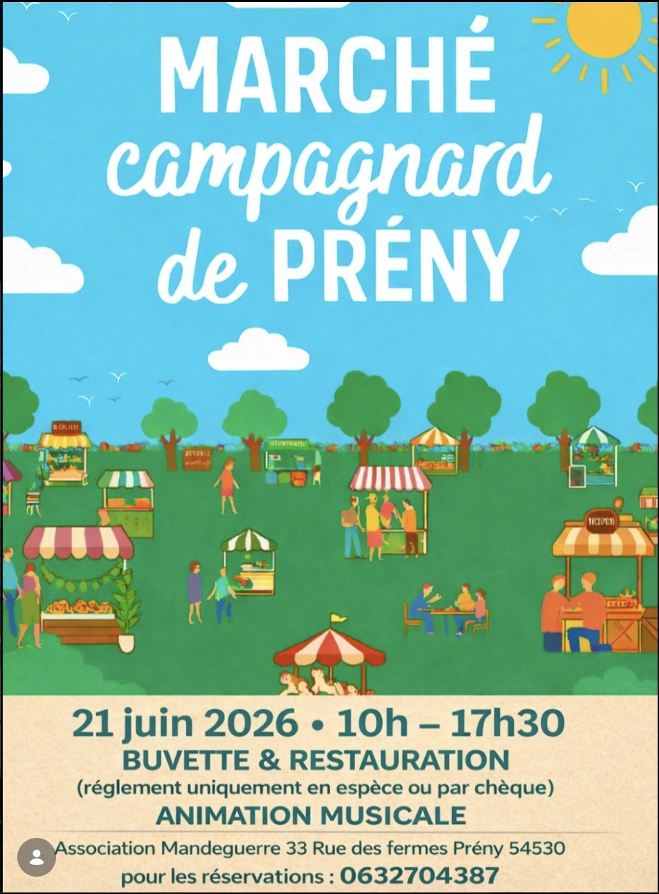 L'Association Mandeguerre vous accueille le 21 juin à Prény, pour le marché campagnard !